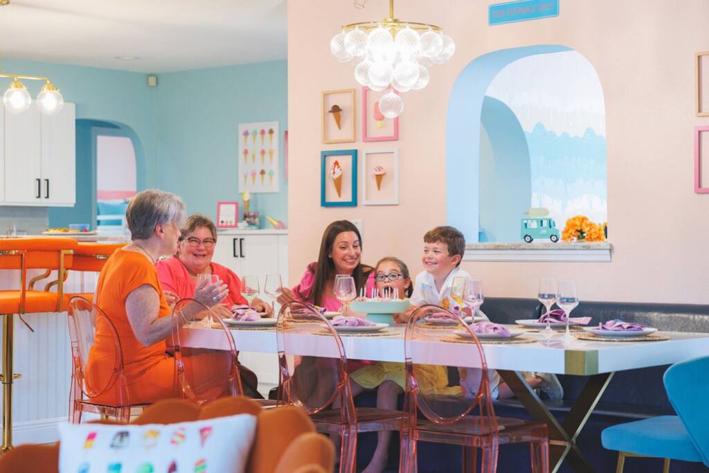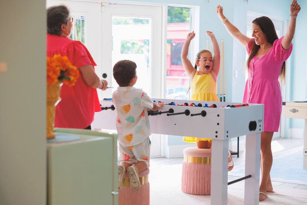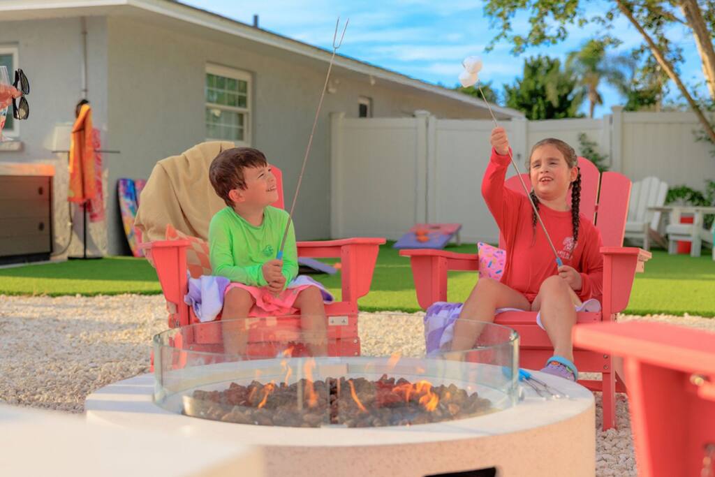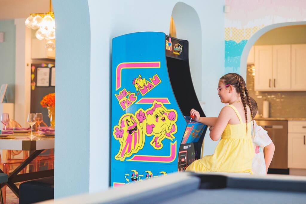 ★ Spacious Living Room ★ ⊰ Open floor plan with cozy seating and lots of natural light ⊰ 75" Smart TV for movie nights ⊰ Ice cream-themed accents and nostalgic decor touches ⊰ Dedicated work station with desk, chair, and lamp ⊰ Easy access to kitchen, dining, and outdoor living areas ★ Full Kitchen ★ ⊰ Fully stocked with modern appliances & cookware ⊰ Island bar top with seating for 2 ⊰ Drip & Keurig coffee makers, blender, waffle maker, and more ⊰ Ice cream bowls, scoopers, and even an icecream maker ⊰ Ample pantry and cabinet space ★ Dining Area ★ ⊰ Large dining table with seating for 10 ⊰ Perfect for big family meals and game nights ⊰ Centrally located for indoor/outdoor flow ★ Bedrooms ★ ⊰ 3 playful, ice cream-inspired bedrooms ⊰ Fresh linens and plush pillows for every stay to ensure you have sweet dreams ⊰ Smart TVs and plenty of storage in each room ⊰ Themes include Confetti Cabana, Mint Chip Cove, and Sorbet Suite ⊰ All 3 pristine bathrooms are updated with modern fixtures and stocked with essentials ★ Game Room ★ ⊰ Full-size pool table, foosball, and Ms. Pac-Man arcade game ⊰ 55" Smart TV and a mini fridge so you don’t miss a moment of fun ⊰ Countless board games, books, and Magna-Tiles for kids ⊰ Perfect hangout space for guests of all ages including the young ones ★ Photo Booth Room ★ ⊰ Custom mural + props = perfect photo ops ⊰ Capture your sweet vacation moments with style and connect with us on social media ★ Backyard Tropical Oasis ★ ⊰ Heated saltwater swimming pool with waterfall ⊰ Hot tub for starry night soaks w/ 75" Smart TV ⊰ 6 comfy chaise lounges ⊰ Outdoor living area under large canopy umbrella ⊰ Covered custom outdoor bar with fridge & TV ⊰ Al fresco dining area and BBQ grill ⊰ Huge fire pit with adirondack chairs for s’mores and storytelling ⊰ Room for yard games and family fun (custom cornhole boards, giant connect 4 and lawn jenga) **pool heating fee - $50 per full day** ★ Workspace Area★ ⊰ Spacious desk ⊰ High speed Wi-Fi throughout ★ Family-Friendly Extras ★ ⊰ Pack ’n Play, high chair, umbrella stroller, and baby tub ⊰ Tons of games, books and beach toys for little ones ⊰ On-site washer & dryer for your convenience ★ Beach Day Ready ★ ⊰ Complimentary use of beach chairs, umbrellas, cooler, and toys ⊰ Just a short distance (less than 7 miles) to Anna Maria Island’s white sand breathtaking beaches